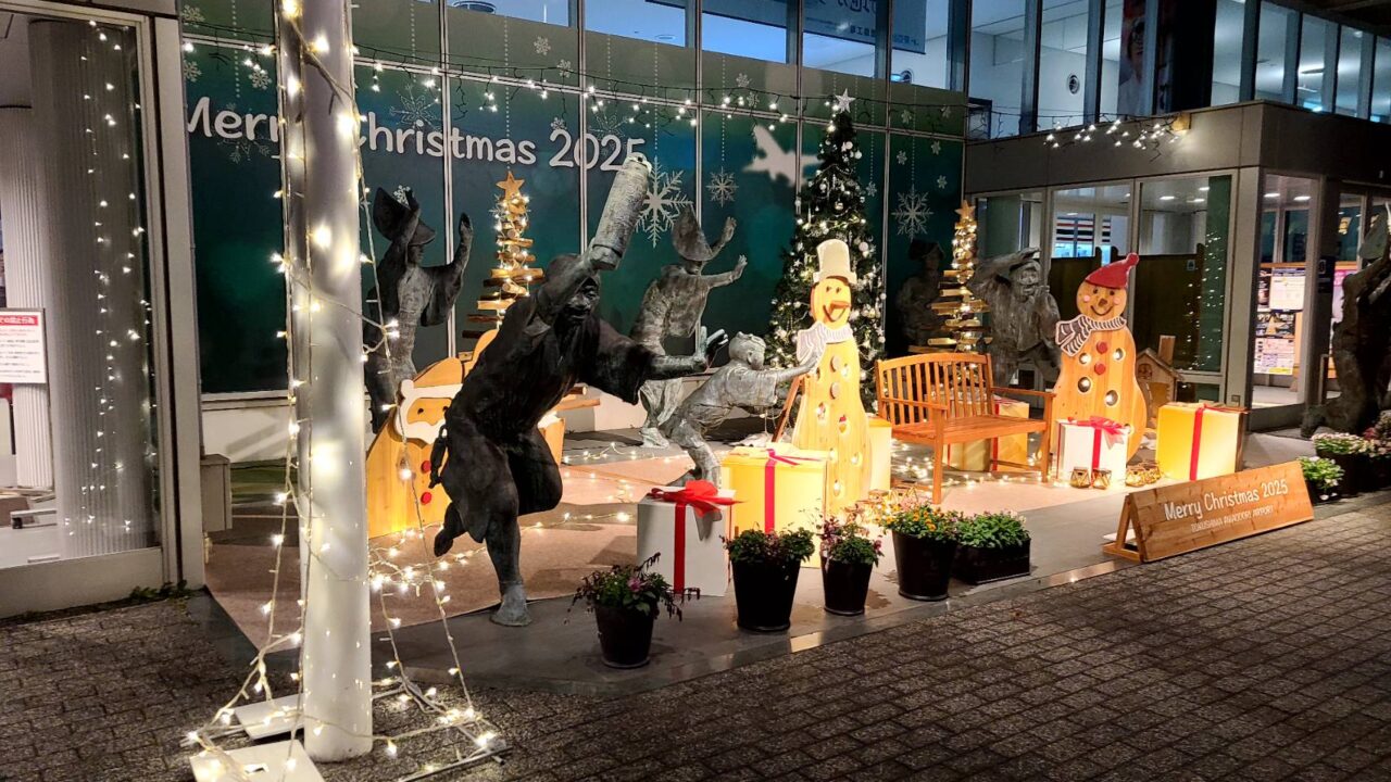 阿波おどり像前には「Merry Christmas 2025」の文字やクリスマスツリーといった光の装飾が施され、ベンチに座って記念撮影ができます。また、館内でもクリスマス気分が味わえる場所がいくつもあります。
