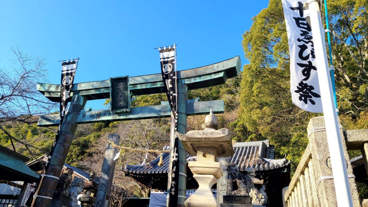 開催期間は、2026年1月9日(金)~11日(日)。午前9時~午後9時。場所は撫養町南浜の「事代主(ことしろぬし)神社」です。JR撫養駅を北へ突き当たったところで、住居やお店と山並みの境にあります。