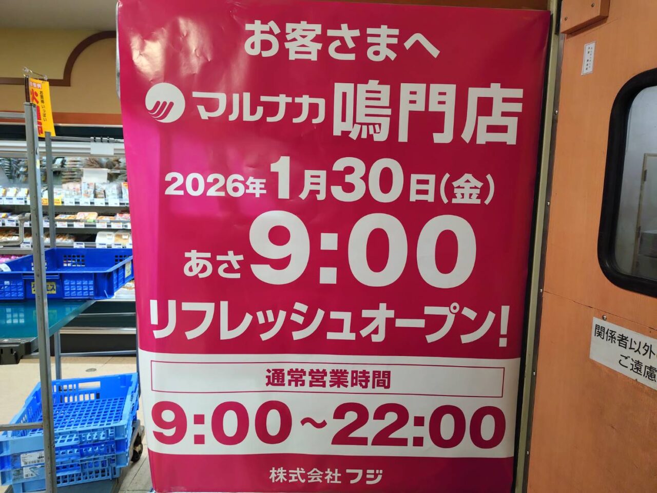 【鳴門市】「マルナカ 鳴門店」が店舗改装工事のため、臨時休業するようです。