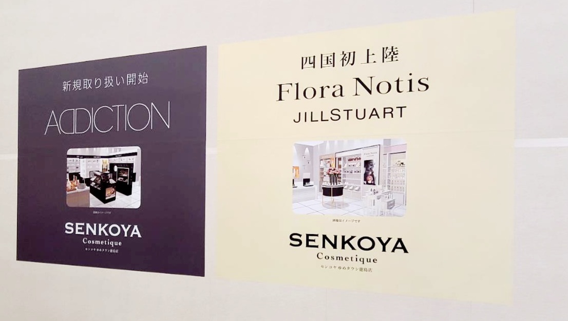 場所は「ゆめタウン 徳島 1階」になります。リニューアルオープンに際して、アイシャドウの「AᗡDICTION(アディクション)」や「Flora Notis(フローラノーティス)」「JILLSTUART(ジルスチュアート)」など、新規に取り扱う商品も増えるようです。